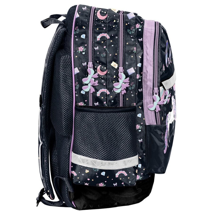 Դպրոցական ուսապարկը բնութագրվում է երկու ընդարձակ խցիկներով և երկու մեծ առջևի գրպաններով: