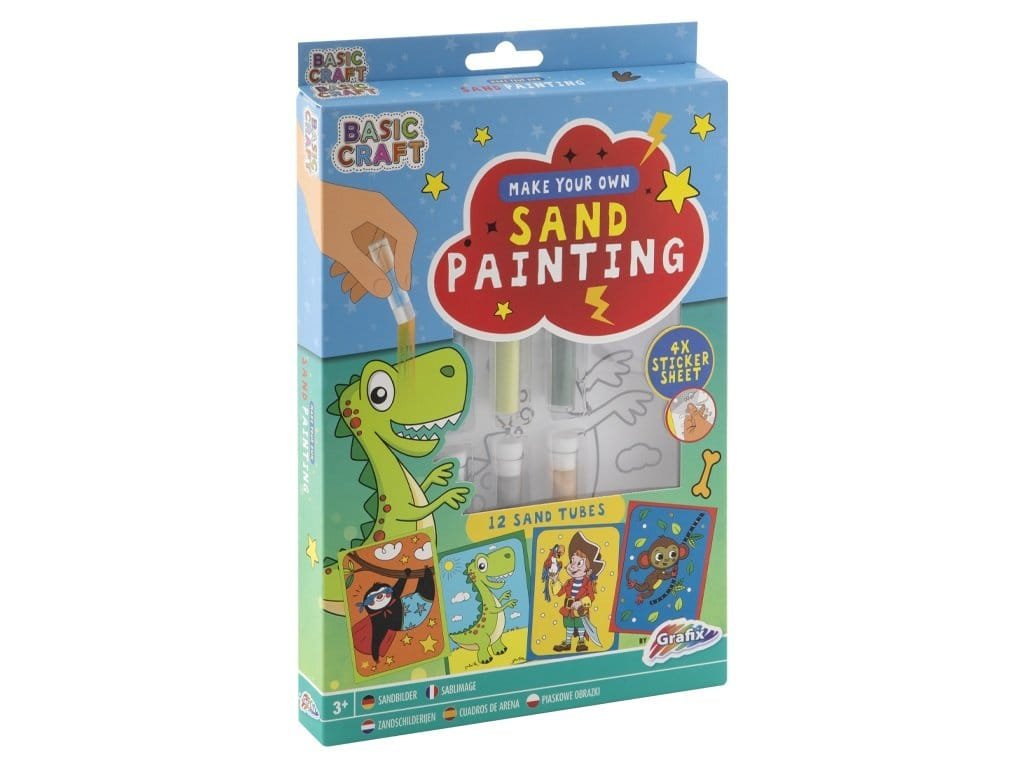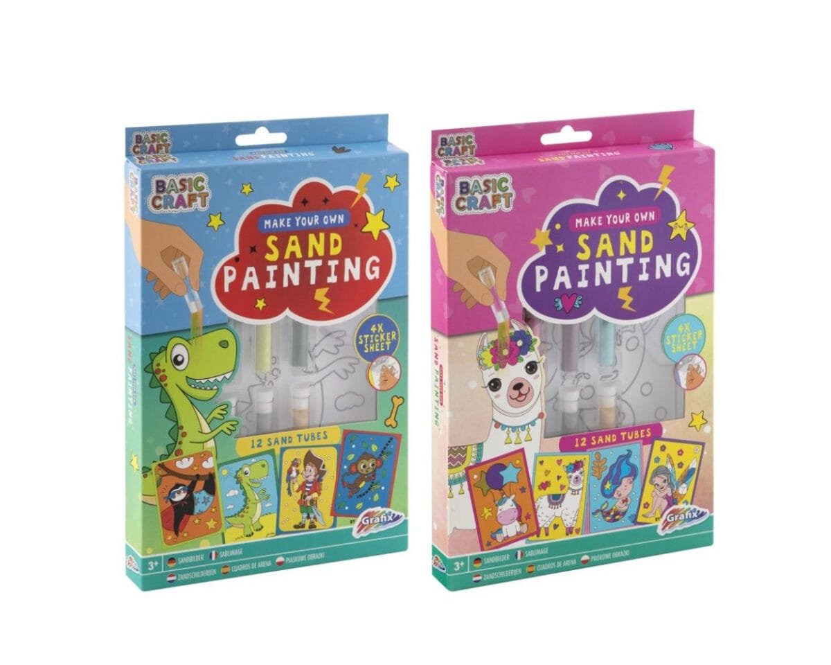 Ինքնասոսնձվող մոդելների 4 թերթից բաղկացած հավաքածու և ավազի 12 խողովակ տարբեր գույներով։