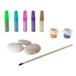 Հավաքածուն ներառում է՝ 3 քար, 5 գույնի փայլուն սոսինձ, ոսկե և արծաթյա ներկ, վրձին։