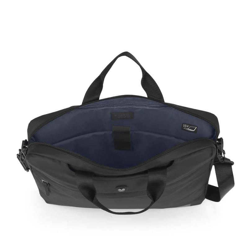 15.6 դյույմ նոութբուքի պայուսակ՝ պատրաստված խեժապատ պոլիեսթերից և սինթետիկ կաշվից, սև։
