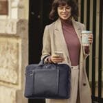 15,6 դյույմանոց արհեստական ​​կաշվից նոութբուքի պայուսակ, կապույտ, երկու խցիկով: